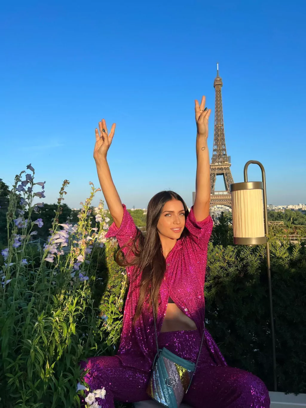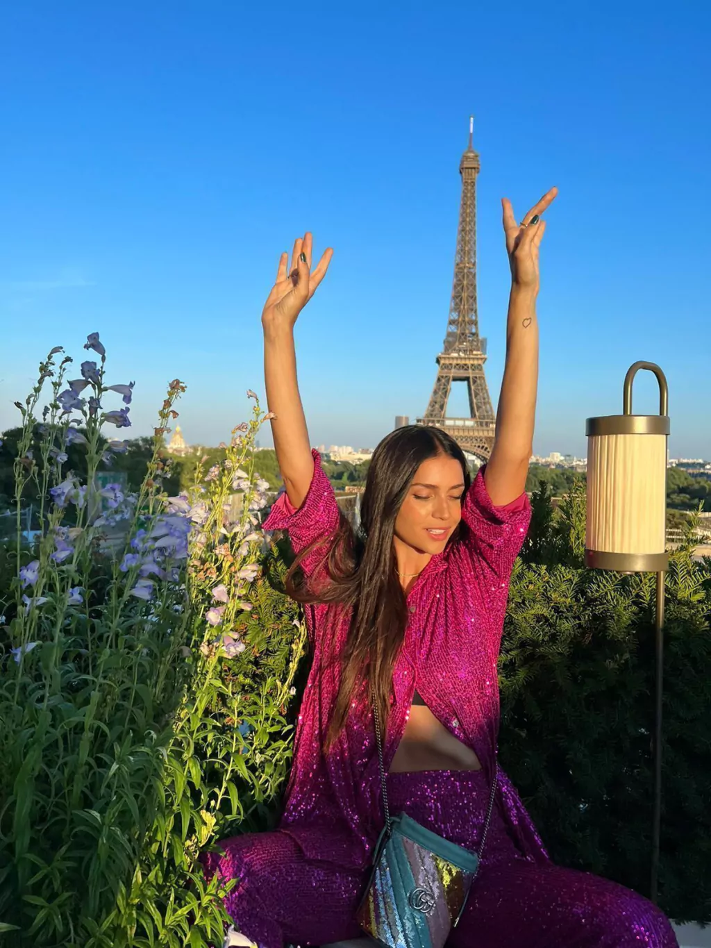 Camisa estilo boyfriend y pantalón en paillette. Pantalón semi oxford con elástico en la cintura.