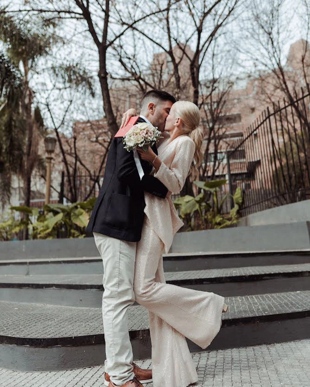 Blazer y pantalón de paillette. Blazer con hombreras y solapa de raso. Pantalón semi oxford con elástico en la cintura.
